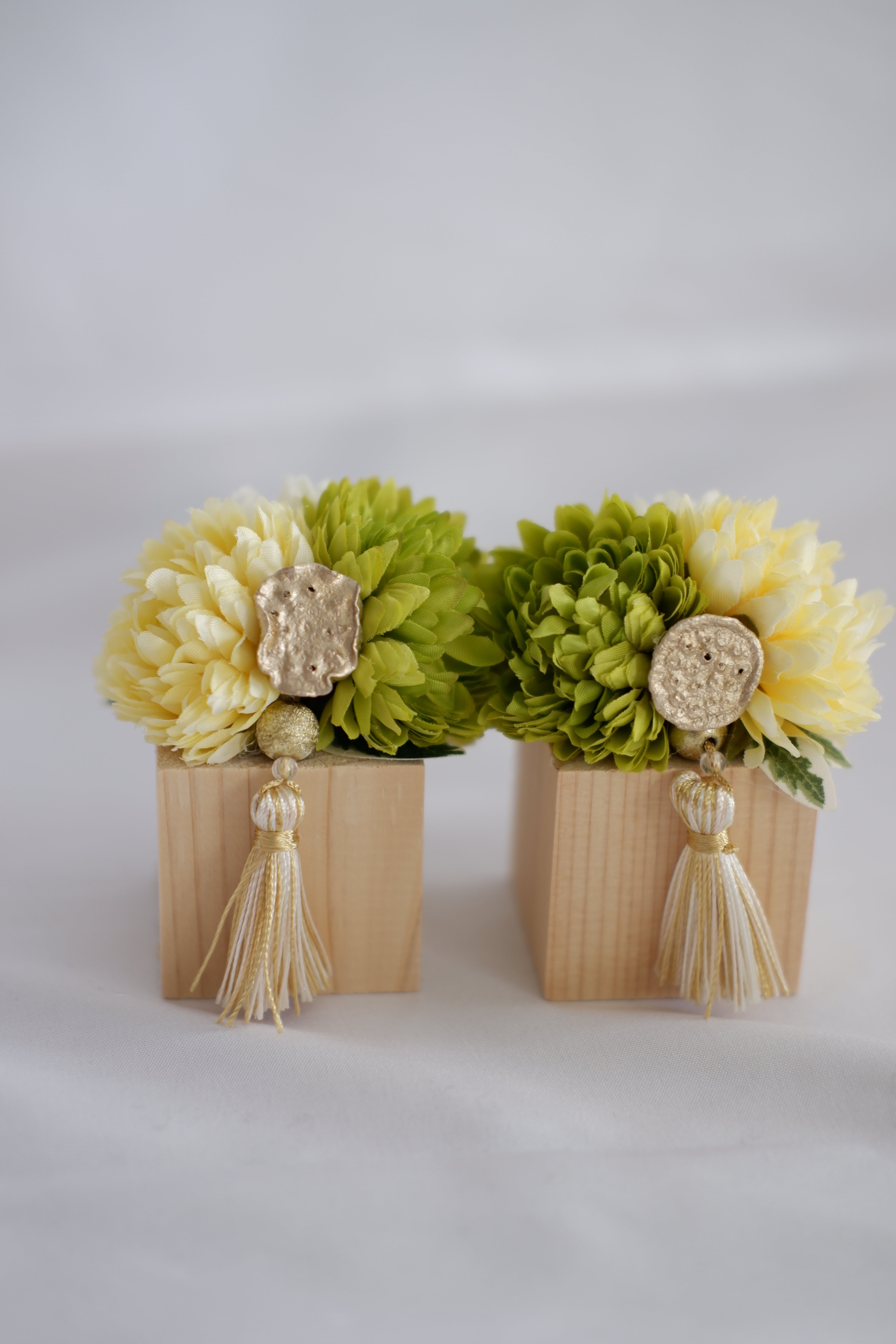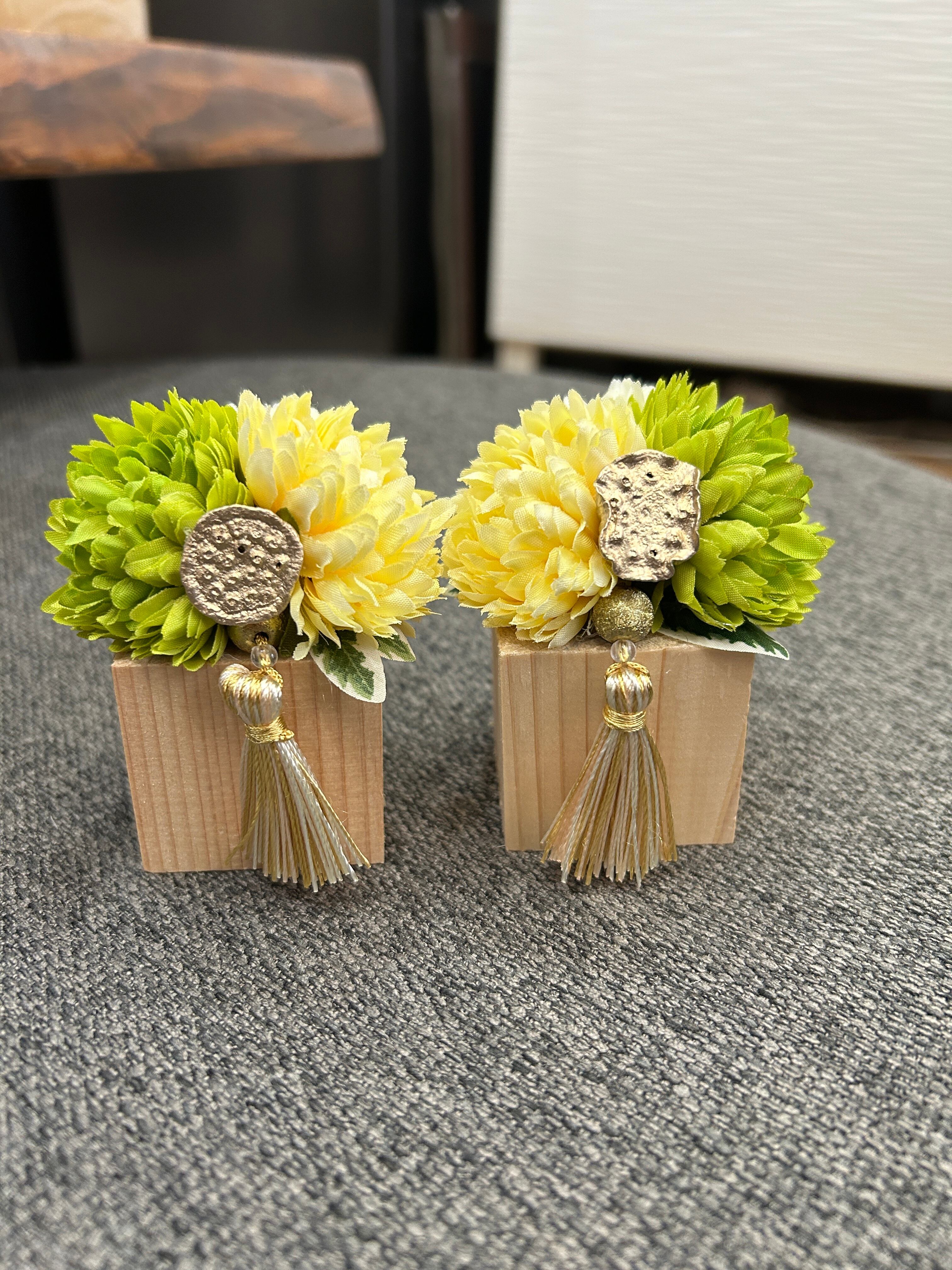 【送料無料・2個セット】グリーン・イエロー/コンパクト仏花|アーティフィシャルフラワー|お手入れ不要で長持ち|モダン仏壇・納骨堂対応